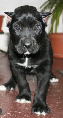 Vand pui cane corso, varsta 2 luni , mascul superb negru cu pata alba pe piept si pe picioare - foarte jucaus.