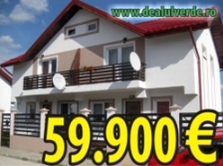 Utilitati: curent electric, gaze, canalizare, apa, paza, gard, asfalt, internet, iluminat stradal. Programul Prima Casa, credit bancar. Pret casa la cheie + teren + TVA = 59.900 euro. YM: dealulverde