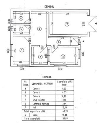 camera, baie, la demisol SU=57mp: birouri, baie si garaj, curte: 100mp.