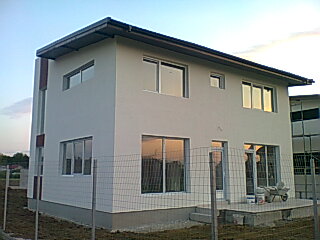 Vila cuprinde la parter:living,bucatarie,baie;iar la etaj 2 dormitoare si o baie;exteriorul este finisat ,iar interiorul semifinisat.