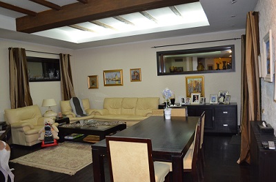 - Casa caramida poroterm, izolata, cu subsol, parter si etaj. La subsol este sala de distractii cu masa de billiard, sofa-uri , bar, TV, baie, crama, camera tehnica.Parterul este deschis cu treceri de nivel living cu semineu, iesire spre gradina, bucatarie ultra-moderna, doata complet, 1 camera si 1 grup sanitar cu dus.La etaj se afla un master-bedroom cu dressing si grup sanitary en-suite si alte 2 dormitoare si 1 baie. La etaj se mai afla si o terasa cu vedere la lacul Snagov.Curte amenajata, piscina, foisor/pergola si gratar construit/zidit. Curtea este inconjurata de gard de caramida, poarta fier-forjat electrica si garaj cu usa cu telecomanda.Casa mai beneficiaza de aer conditionat, put propriu, gaze si apa. Pret 349.000 euro. Contact: 0722200056.