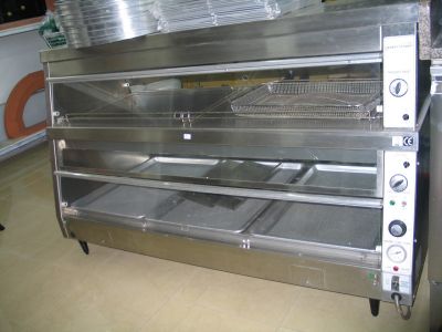 - Vand vitrina calda Henny Penny HCW-5 cu boiler de 38 litri, trifazata 400 V, putere 4400 W, dimensiuni 1543 x 756 x 832 mm, greutate 147 Kg, 2 rafturi cu capacitatea de 5 tavi 457 x 660 mm. Umidificator avand bazin cu umplere automata, panouri mobile, interior exterior inox, canal de preaplin pentru apa, distribuire uniforma a caldurii, iluminare interioara incandescenta, panou de control cu comenzi independente. Este o vitrina de inalta calitate, second hand, folosita o luna de zile. O recomand pentru toate tipurile de mancaruri calde. Pentru mai multe detalii sunati la 0731.333.404, 0730.999.998 sau email pe catalin.olaru@alforno.ro.