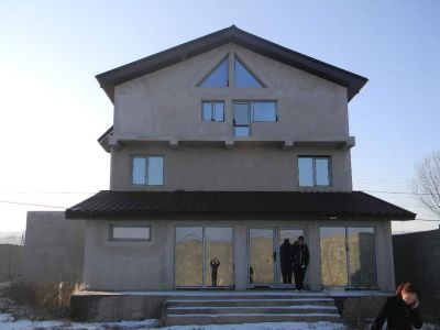 Casa proiect facut in Germania model deosebit spatioasaP+!E+M casa este compusa din Partier living baie de serviciu bucatarie dresing garaj camera tehnica. la etaj are 3 dormitoare si o baie spatioasa iar mansarda este compusa dintr-un dormitor matrimonial baie sauna si un living spatios. Deasemenea casa mai are si 3 terase. Casa este tencuita la interior. Instalatia electrica trifazata+statie de epurare proprie montata.