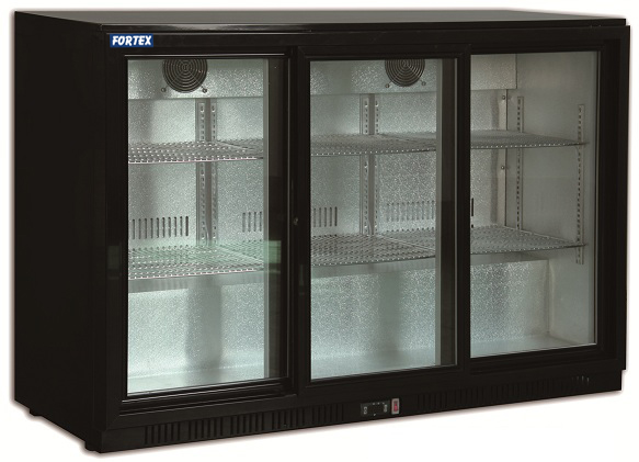 Vitrina frigorifica pentru bar cu 3 usi glisante, capacitate 330lt, structura externa neagra, interior din aluminiu, racire ventilata, control electronic temperatura, decongelare automata, temperatura de lucru 0°C... +10°C, lumina interna, 6 polite reglabile, agent frigorific R 134a, alimentare 220V, consum 2,5kwh/24ore, dimensiuni ext. 1405x570x895Hmm. COD: 390072. PRET: 591 EURO. Tel: 0731 347 077. Website: http://www.echipamentehoreca.ro/produse/echipamente-bar-si-cafea/vitrine-frigorifice-de-bar/detalii-vitrina-frigorifica-de-bar-cu-3-usi(2269)