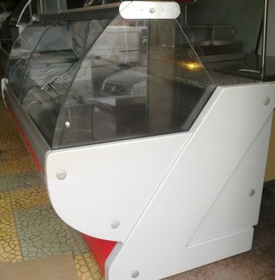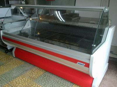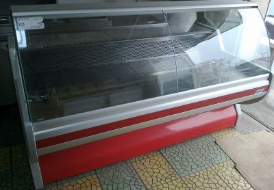 Vitrina frigorifica, carne si mezeluri, cu geam curbat, firma MAWI, dimensiuni 200x110x127 cm , pret 800 euro.