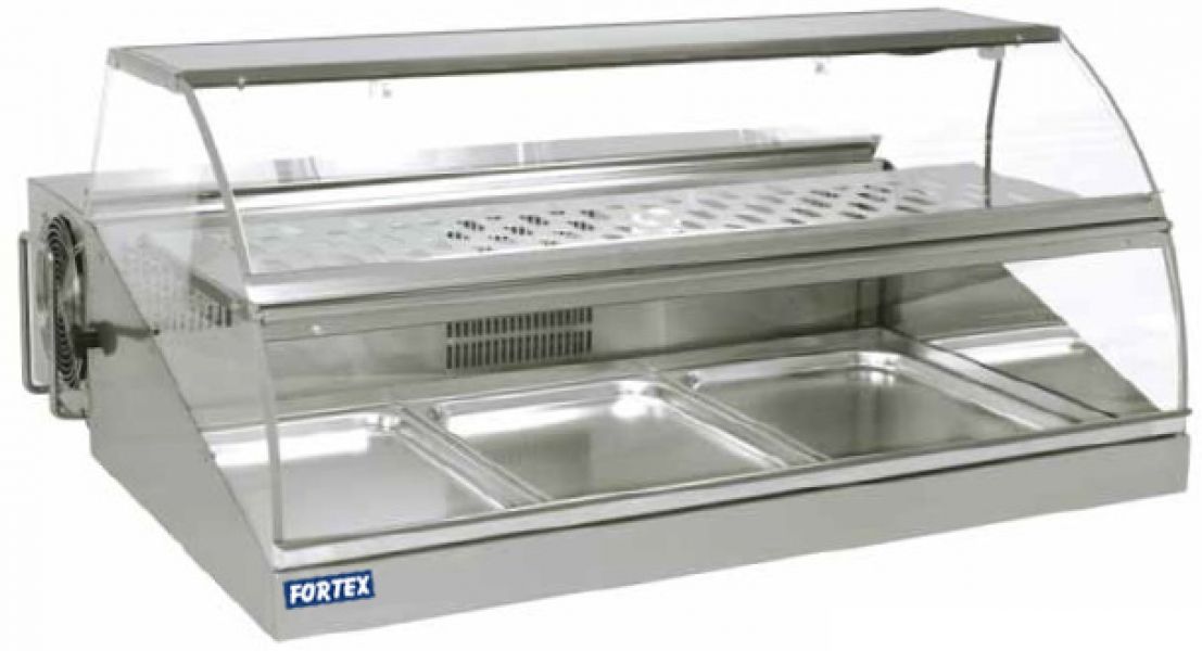 Vitrina frigorifica suprapozabila, capacitate 110 lt., 3 GN 1/1 (neincluse), polita intermediara, constructie inox, 2 geamuri frontale rabatabile, 2 geamuri glisante in partea din spate, racire ventilata, temp. lucru +2 … +10°C, iluminare, alimentare 220V, putere 0,5 Kw, greutate 60 Kg, dimensiuni 1000x900x475mm. COD: 700002. PRET: 930 EURO. Tel: 0731 347 077. Website: http://www.echipamentehoreca.ro/produse/echipamente-fast-food/vitrine-reci-de-banc/detalii-vitrina-rece-de-banc-3-gn-11-si-polita(2460)
