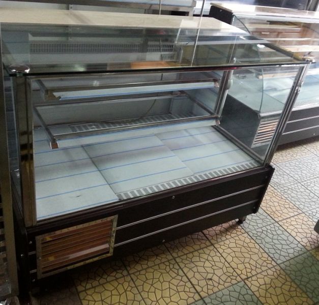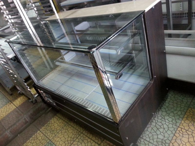Vitrina rece pentru cofetarie - prajituri , dimensiuni: 154x91x120 cm, interior 80 cm, cu 2 rafturi sticla, iluminare, loc pentru servit din marmura pret 1400 Euro+Tva. Produs nou cu garantie 12 luni.