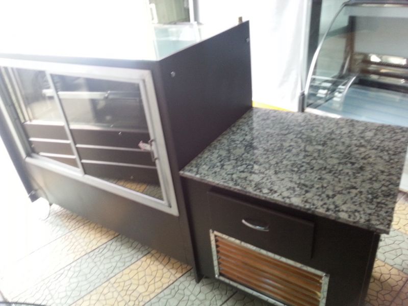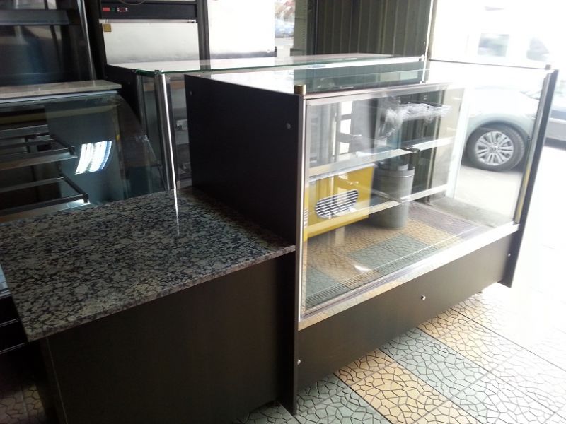 Vitrina rece pentru cofetarie - prajituri , dimensiuni: 162x75x131 cm, suport din marmura cu sertar dim: 80x75x83cm H, cu 2 rafturi sticla, iluminare, loc pentru servit din marmura pret 1500 Euro+Tva. Produs nou cu garantie 12 luni.