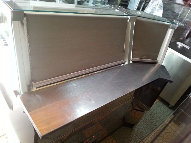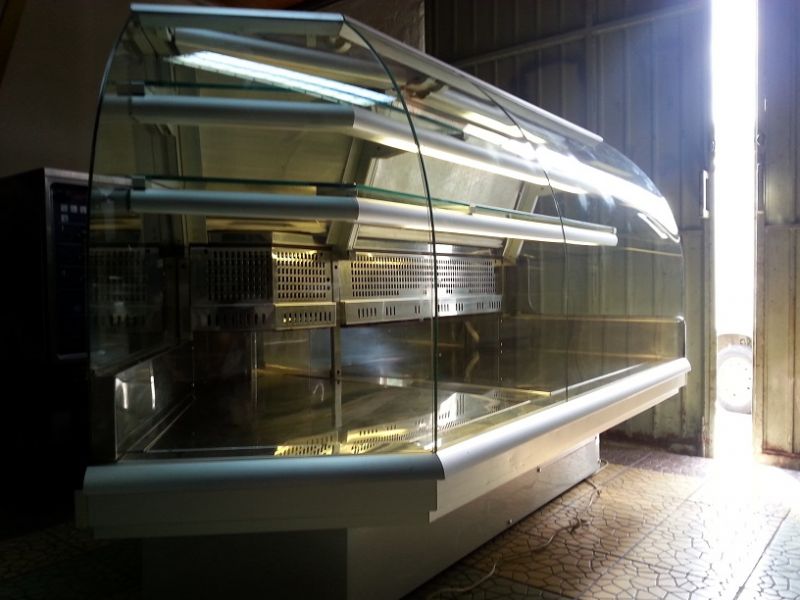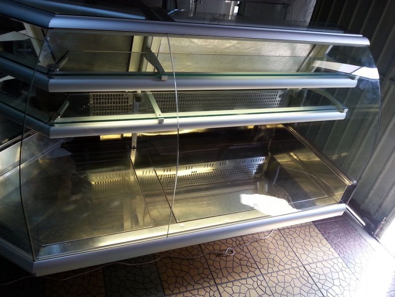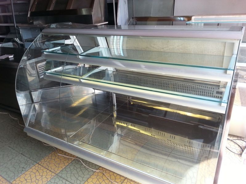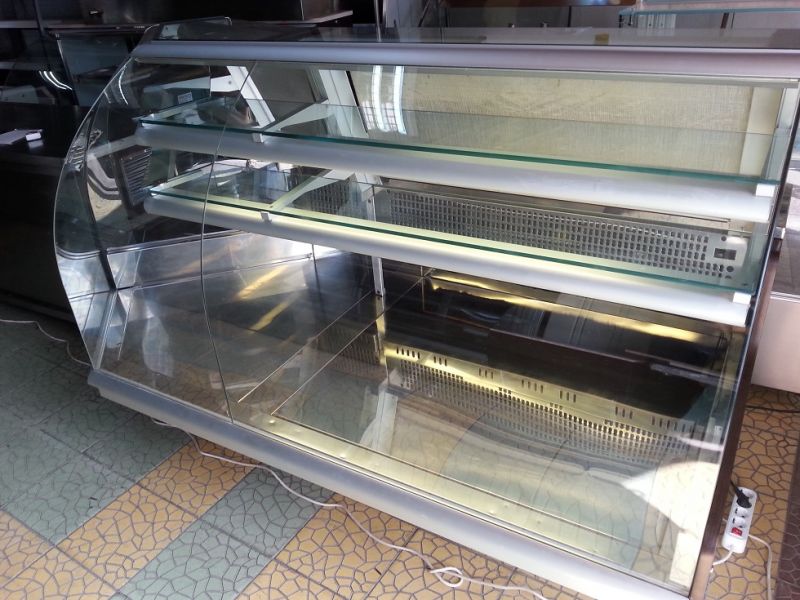 Vitrina rece pentru prajituri, torturi, Isa Bastia Italy, iluminare fiecare raft, fara spatiu depozitare, cu perdea culisanta spate, dim: 164x95x134H si coltul 54 cm interior 72 cm, pret 1100 euro plus Tva. Produs Second Hand.