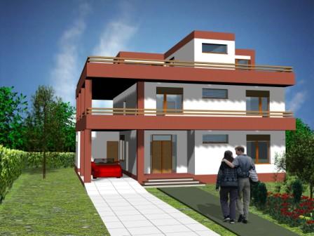 - Parter cu garaj acoperit, etaj 1, etaj 2 retras;