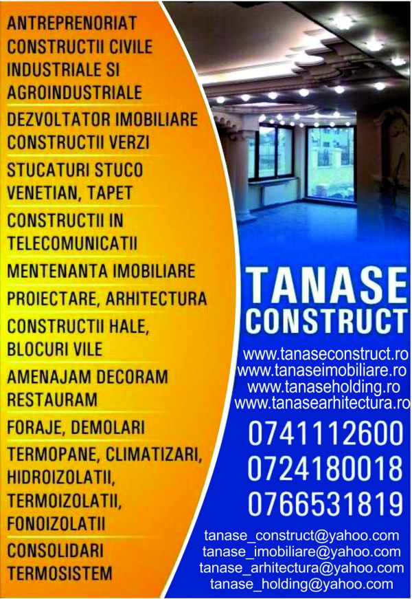 - Reparatii zugraveli igienizari garsoniera1500 lei,ap 2 camere 2500 lei,ap 3 camere 3500 lei,ap 4 camere 4500 lei,FOITA DE AUR,STUCATURI, STUCO VENETIAN TAPET intre 50 lei si 100 mp manopera,constructii civile industriale vile hale case ,montaj rigips,acoperisuri,instalatii electrice,instalatii sanitare,montaj gresie,termosistem,